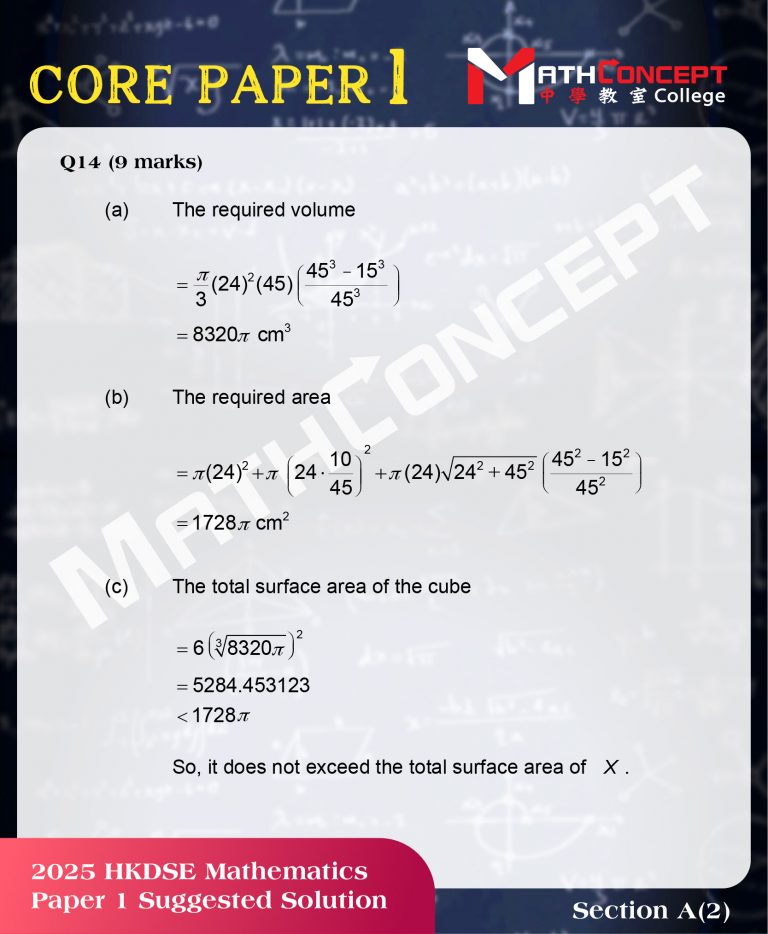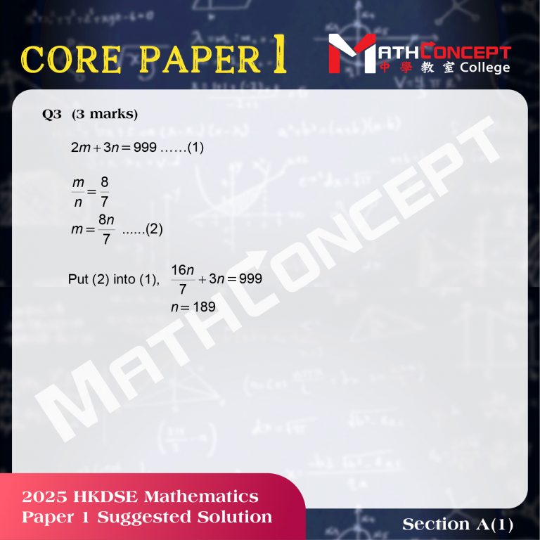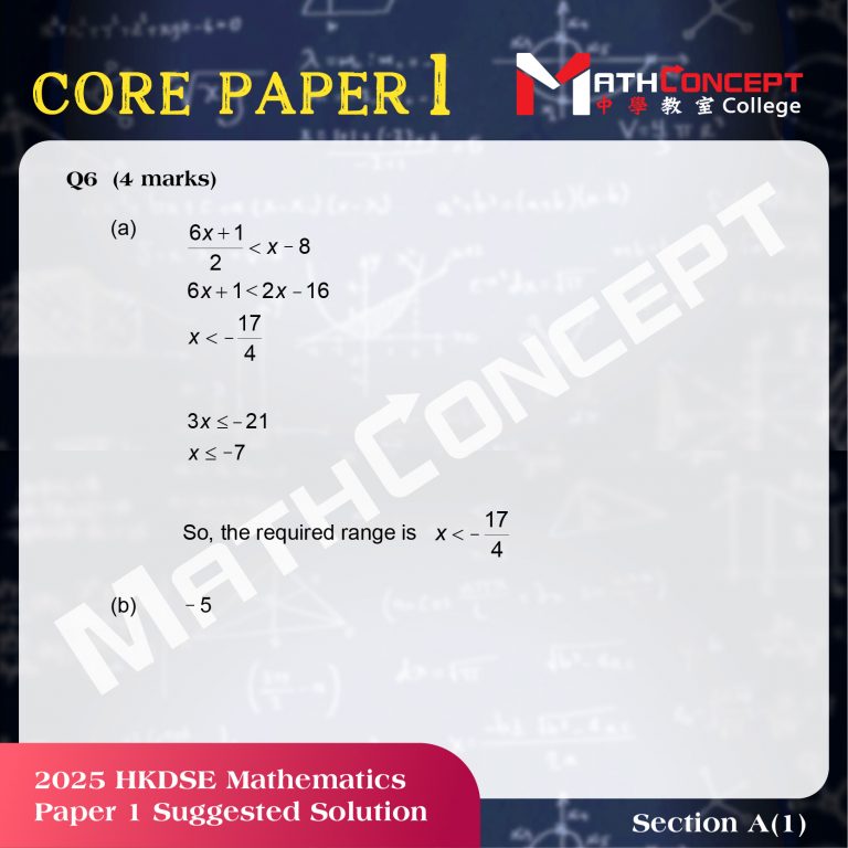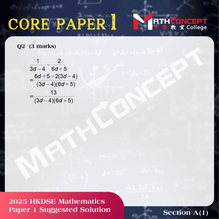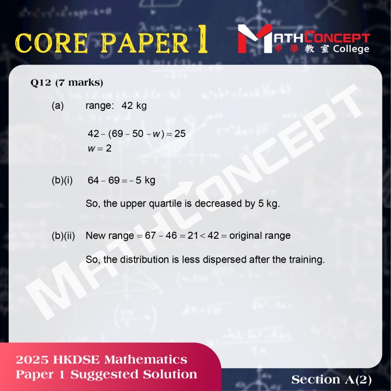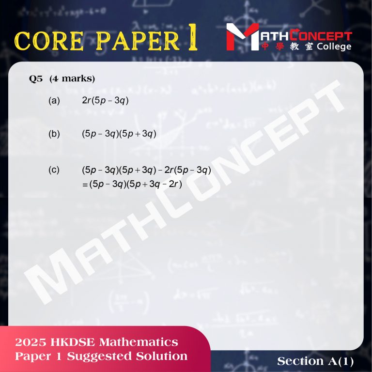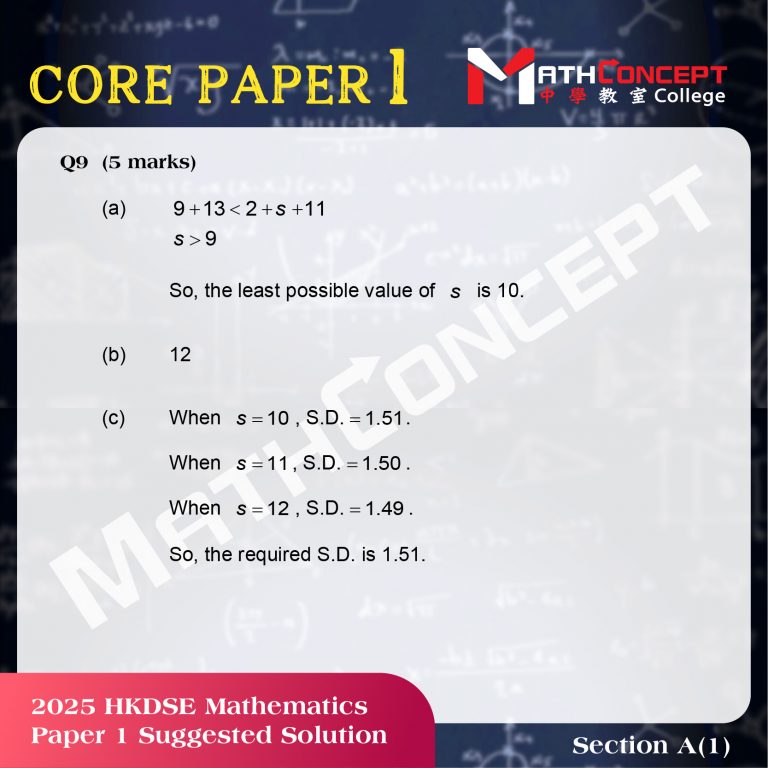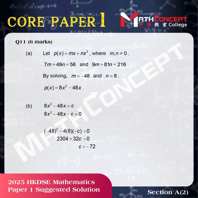 2025 DSE 數學科 卷一 / 卷二 建議答案 | MATH (CORE) PAPER 1 & 2 Suggested Solution — MathConceptCollege