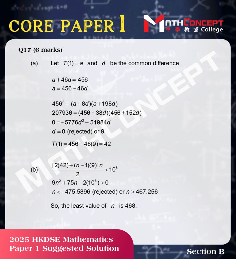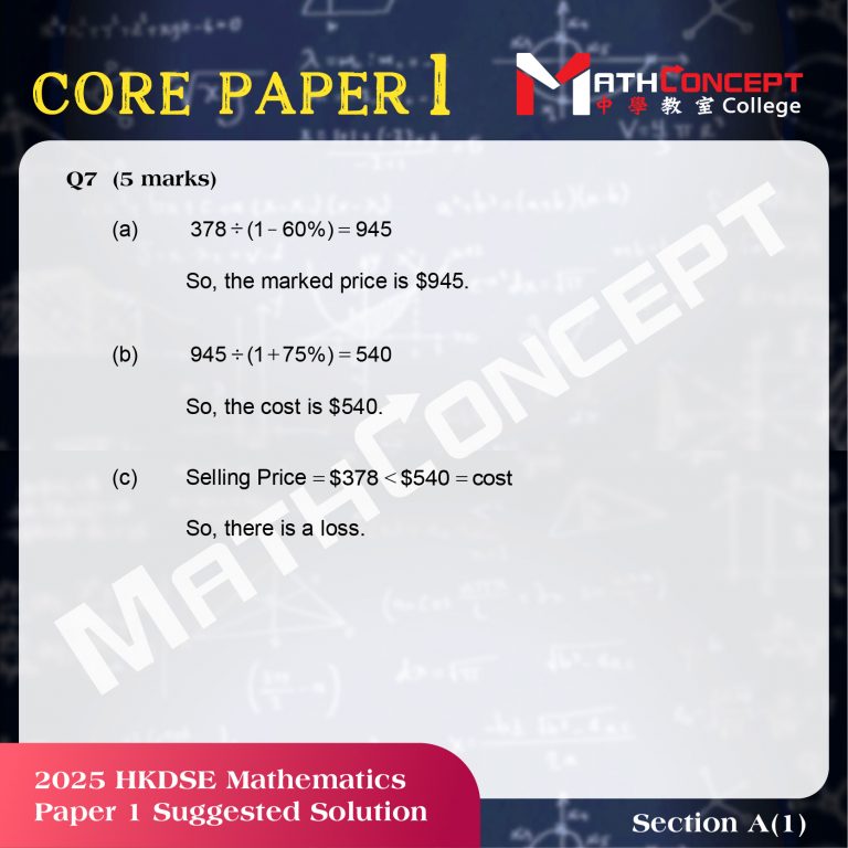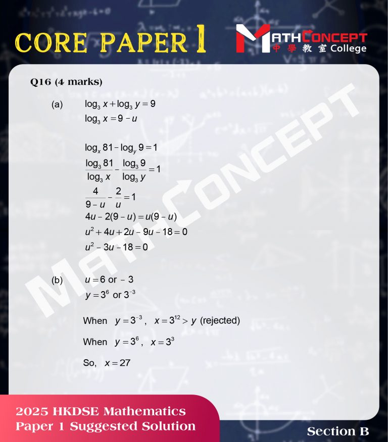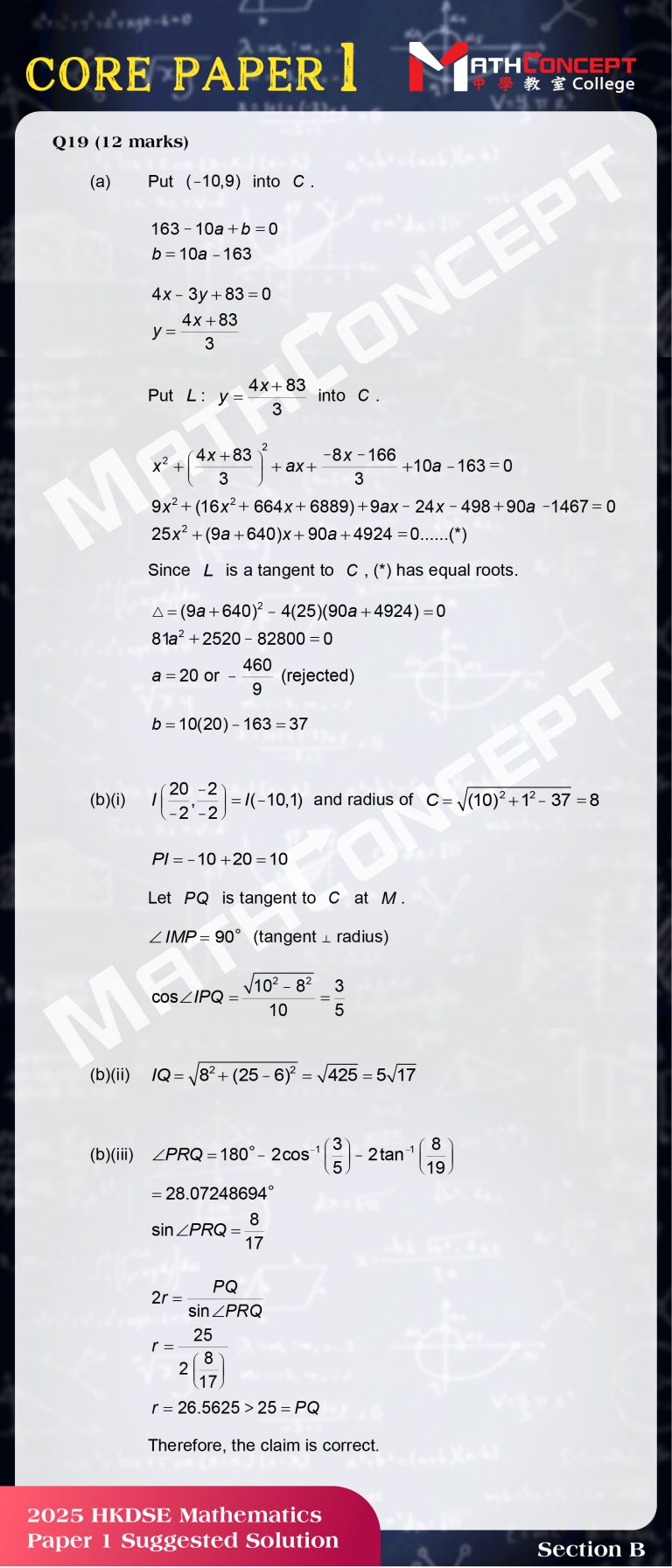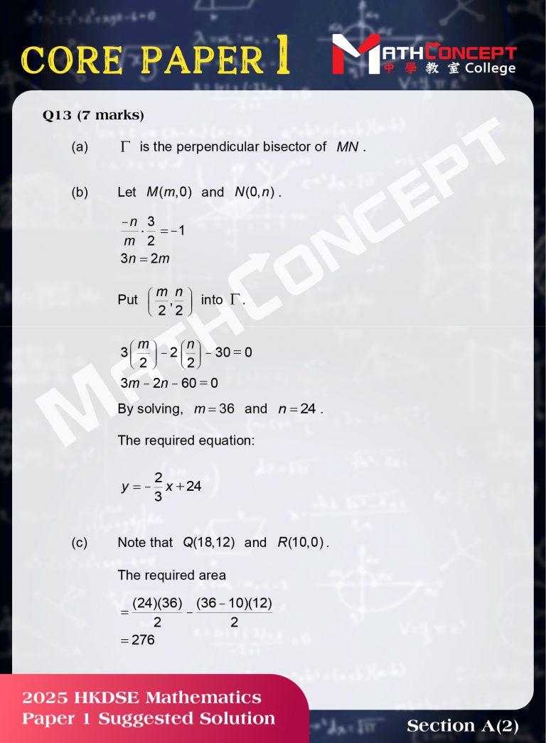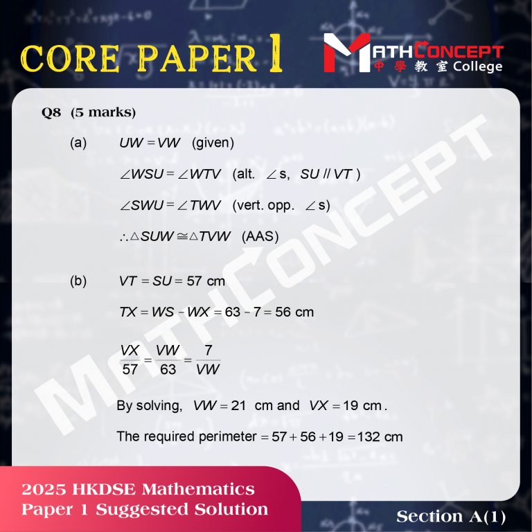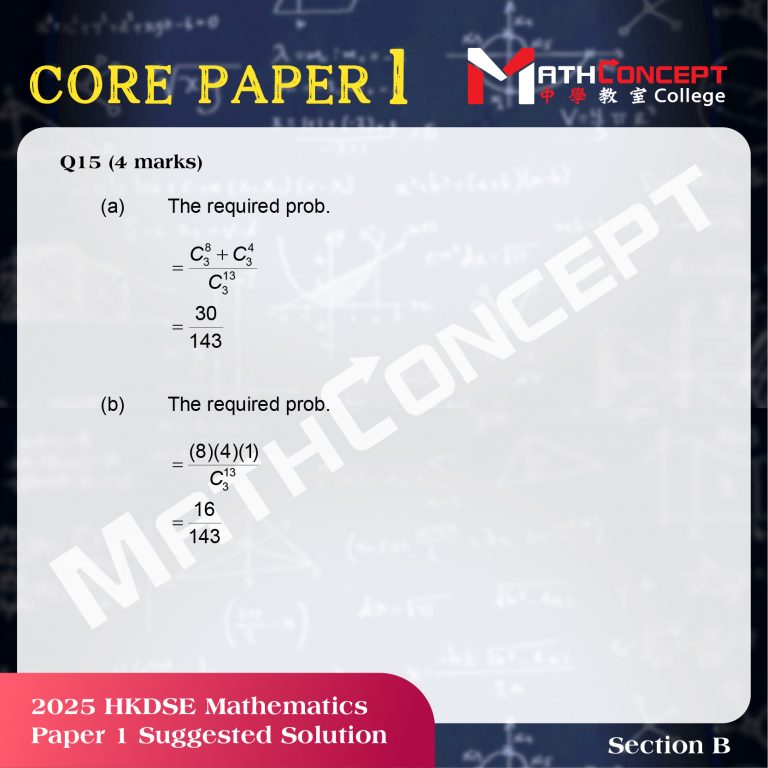 2025 DSE 數學科 卷一 / 卷二 建議答案 | MATH (CORE) PAPER 1 & 2 Suggested Solution — MathConceptCollege