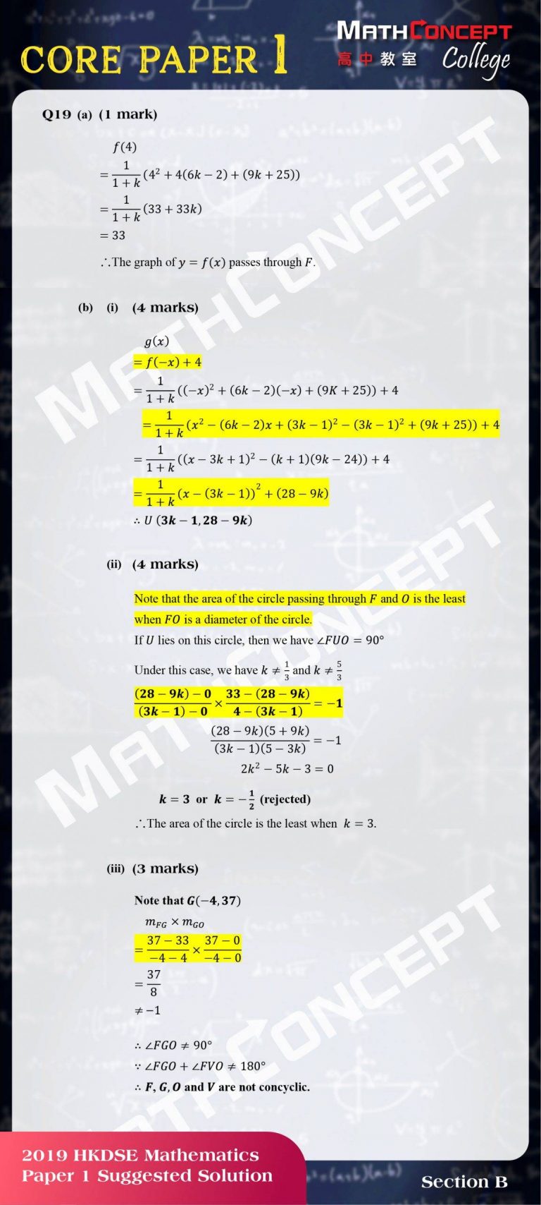 2019 DSE 數學科 卷一 / 卷二 建議答案 | MATH (CORE) PAPER 1 & 2 Suggested Solution — MathConceptCollege