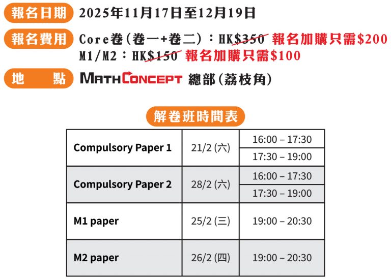 為此,MathConcept特設【2026數學科解卷班】,全面拆解模擬試題,助你釐清盲點、提升應試表現!